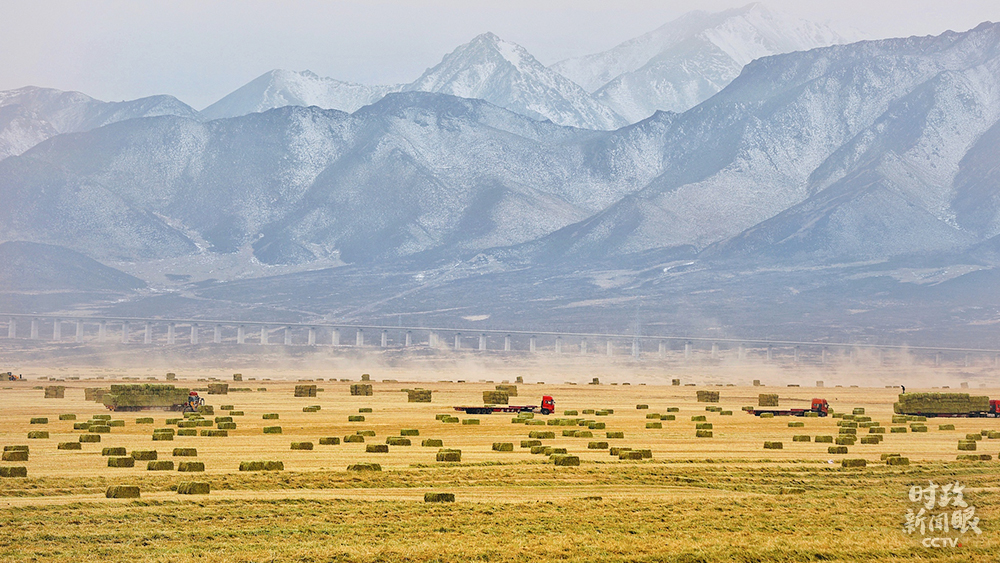 △11月中旬,祁連山下山丹馬場(chǎng)20余萬(wàn)畝燕麥草進(jìn)入收獲尾聲。各農(nóng)業(yè)單位人機(jī)齊上,確保顆粒歸倉(cāng)、寸草歸垛。