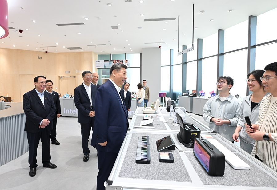 4月29日,中共中央總書記、國(guó)家主席、中央軍委主席習(xí)近平在上海考察。這是習(xí)近平在位于徐匯區(qū)的上海“模速空間”大模型創(chuàng)新生態(tài)社區(qū)人工智能產(chǎn)品體驗(yàn)店考察。
